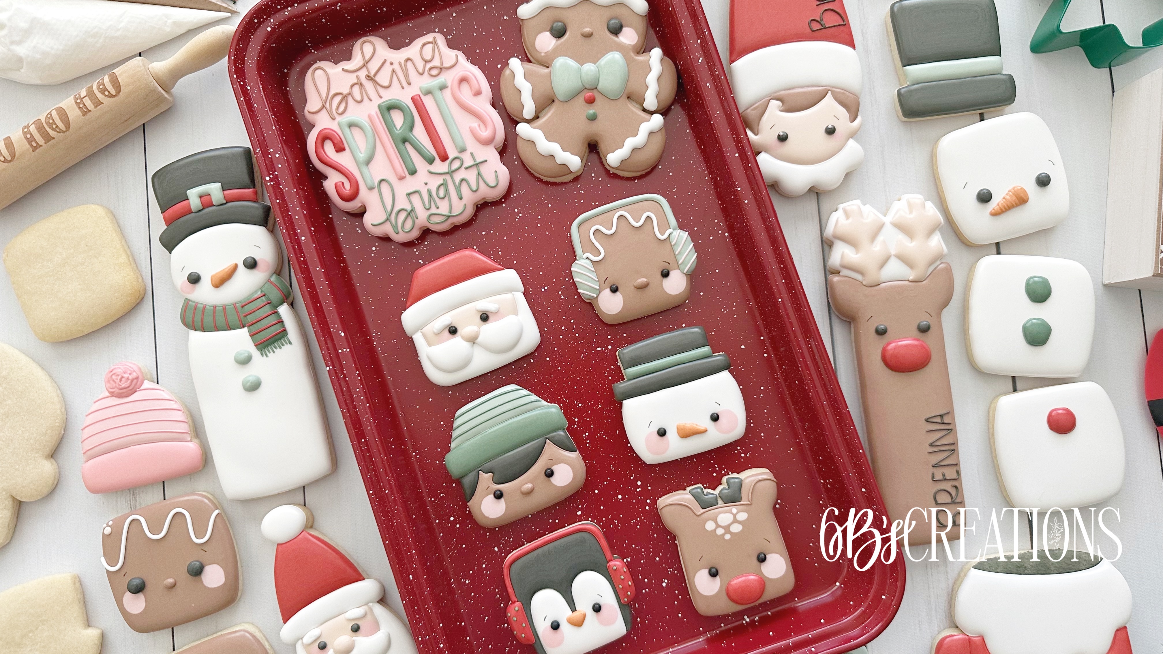 This online class will go over how to create the designs on the 18 different cookies pictured here! Included in the 1 hour and 45 minute video, I will go over the best icing consistencies to use for outlining and flooding, how to add icing in layers without cratering, and how to create layers of icing right next to each other and have them stay separate. I do not show how to decorate each of the mini cookies in the video. I show the general idea and then include step by step pictures in the PDF. The full 43 page PDF will include information on icing consistencies, my royal icing recipe, my sugar cookie recipe, links to all of the cutters used on these cookies, complete supply list with links, step by step directions with pictures on how to decorate the cookies, outline of the video with time markers and coupon codes to some of my favorite shops. The videos are in real time as I explain how to decorate and add all of the details and embellishments to each cookie. Please note that this is an online class and no physical products will be supplied.